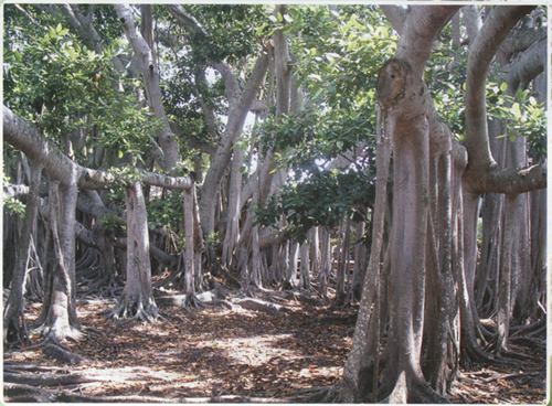 Tik (Teak) & Banyan (Ficus Bengalensis) Ağaçları Tek Başına Bir Orman Banyan Ağacı ( Ficus Bengalensis ) Her dediğini yaptıran, sözü geçen şahıslar için bir tabir kullanılır, “ tek başına devlet” diye. İşte banyan ağacı da yayılma sahasına 7000 kişinin sığabileceği, ”tek başına orman” olan bir ağaç. Çünkü 300’e yakın kalın gövdesi ve 3000 civarında da ince gövdesi bulunuyor. Hindistan ve Güneydoğu Asya’da yetişen banyanın dalları yere doğru büyüyor ve toprakla buluşan her dal, hemen orada kök salıp başka gövdeleri ve dalları oluşturuyor, onlar da başkanlarını. Derken birbirine bağlı binlerce daldan meydana gelen bir koruluk çıkıyor ortaya. Banyan ağacının gövdesinden sızan süt gibi beyaz bir sıvıdan ise kauçuk elde ediliyor. Son olarak, bu ağacın bir türü saksı içinde ya da bahçede yetişebiliyor.